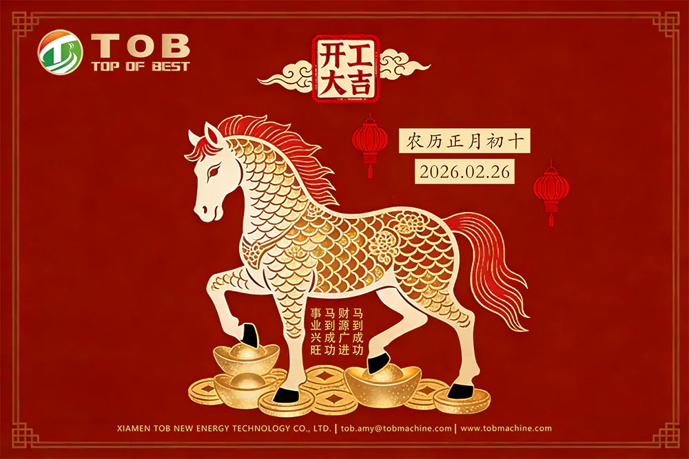TOB NEW ENERGY has officially resumed operations today, and we wish everyone aprosperous, successful, and smoothstart. May this year bring you new opportunities, continued growth, and abundant good fortune in all that you do. Let’s work together to make it our best year yet!